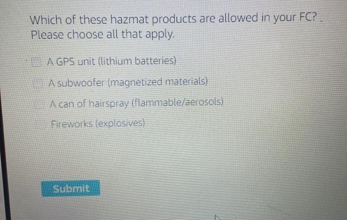 Solved Which Of These Hazmat Products Are Allowed In Your Chegg Com