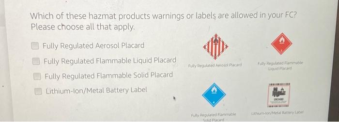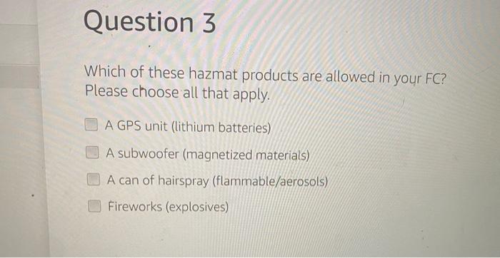 A GPS unit lithium batteries A subwoofer magnetized materials O A can of hairspray flammableaerosols Fireworks explosives Question 5 You are receiving an shipment and. Types of Hamzat products. SellerApp is back with another short Amazon FBA video guide and today we are going to take a look at Amazon FBA HazMat.