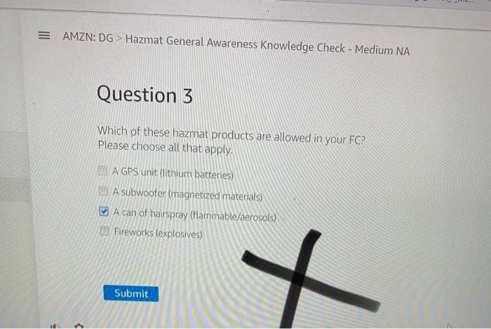 Solved Amzn Dg Hazmat General Awareness Knowledge Check Chegg Com